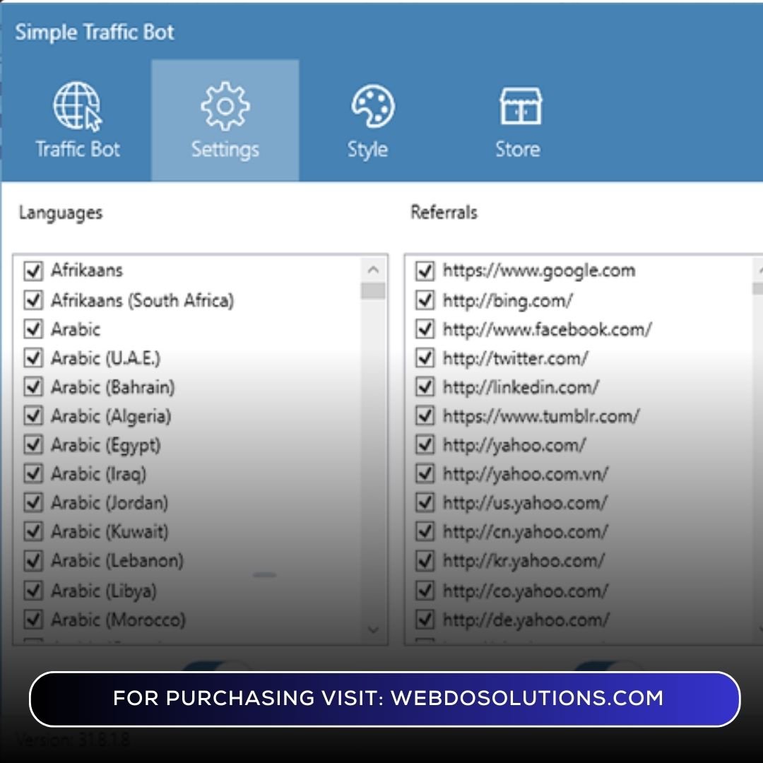 - Customizable settings: Adjust visit speed, page dwell time, referrers & user agents